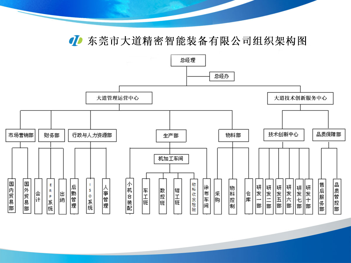 大道精密成立于2019年,公司注冊(cè)資本1000萬元,擁有辦公室、廠房等18,000多平方米。已通過ISO9001:2015國際質(zhì)量管理體系認(rèn)證,擁有國家各類專利共計(jì)58項(xiàng),獲得“中國大道.商標(biāo)”和“一帶一路十周年 .國禮品牌”等榮譽(yù)稱號(hào),屬于國家高新技術(shù)企業(yè),專精特新中小企業(yè)。2023年4月成立了“東莞市大道精密智能裝備有限公司關(guān)心下一代工作委員會(huì)”,是東莞市企石鎮(zhèn)工商聯(lián)副會(huì)長(zhǎng)單位、東莞市企石鎮(zhèn)文學(xué)藝術(shù)界聯(lián)合會(huì)副主席單位、東莞市環(huán)保包裝行業(yè)協(xié)會(huì)副會(huì)長(zhǎng)單位、東莞市數(shù)控裝備行業(yè)協(xié)會(huì)第二屆會(huì)長(zhǎng)單位、廣東省包裝技術(shù)協(xié)會(huì)常務(wù)理事單位、廣東省膠粘劑行業(yè)協(xié)會(huì)理事單位、國家標(biāo)準(zhǔn)《機(jī)械安全中安全防護(hù)授權(quán)系統(tǒng)的基本要求》起草單位。
